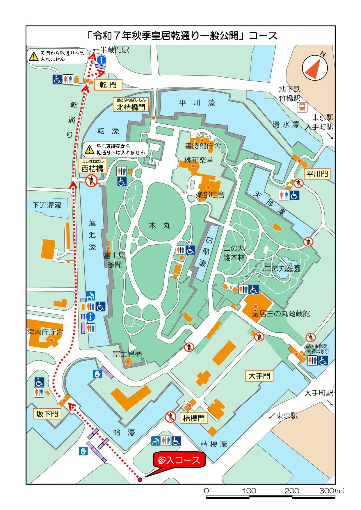 • 乾門又は皇居東御苑から乾通りには入れませんので、ご注意ください。